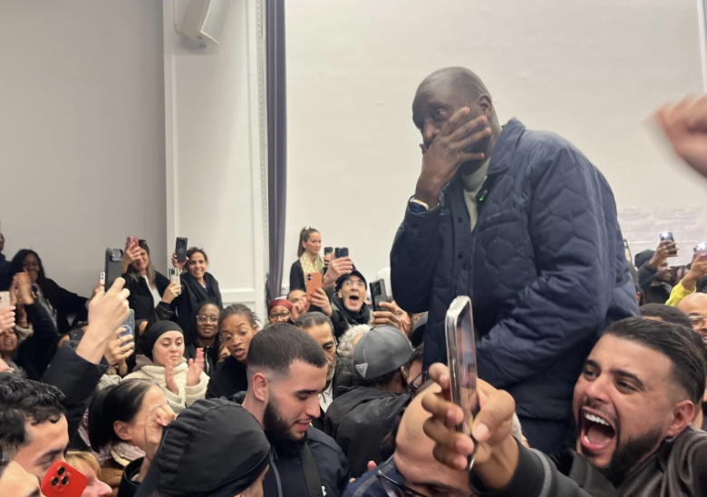 Aly Diouara (LFI), porté par la foule, est visiblement ému après sa victoire aux élections municipales de La Courneuve. • © Matthias Colboc/ Ici Paris Ile-de-France